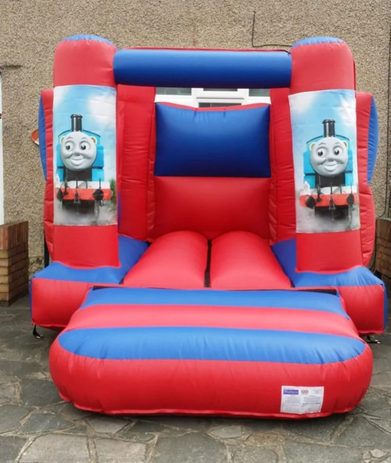 This product includes Blower, extension lead, safety mat, sand bags or pegs to secure the bouncy castle.